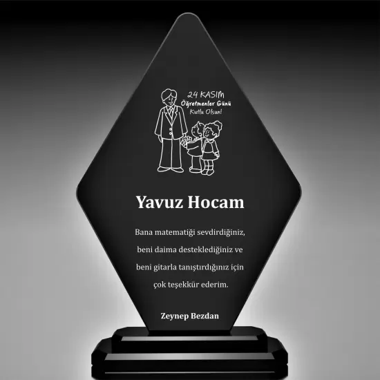 Başarı kazanmış şahıs ve kurumlara verilen, aldıkları başarılar sonucu takdir edildiklerini simgeleyen unsura plaket adı verilir. Kristal Plaket teşekkür etmenin, gururlandırmanın ve başarıyı ödüllendirmenin en iyi yollarından biridir. Öğretmenler gününde öğretmeninizi gururlandırarak teşekkür edebilirsiniz. Kristal Plaket ile Değerli öğretmeninizin bu güzel gününde kalbinde büyük bir hatıra bırakacaksınız.